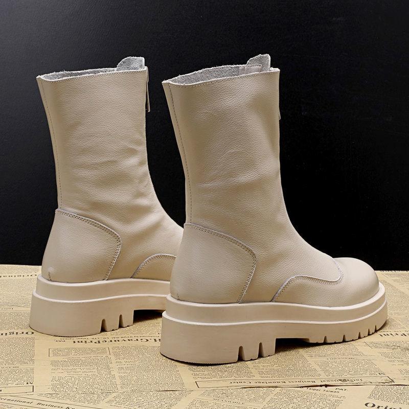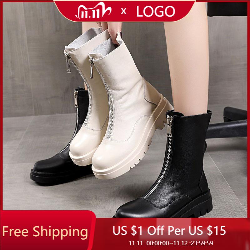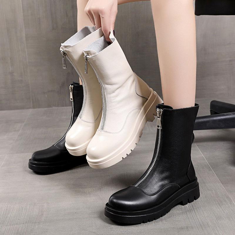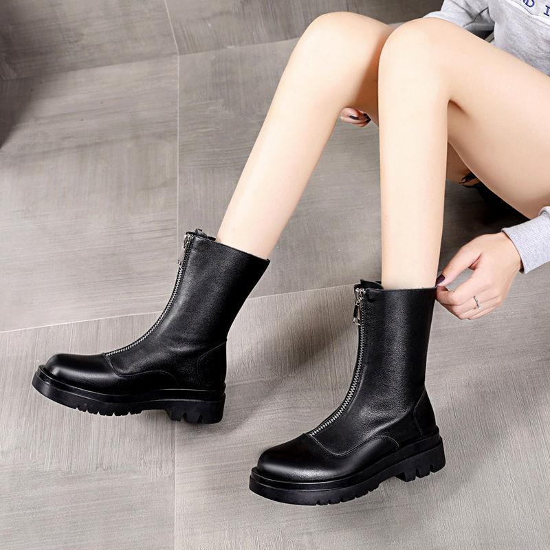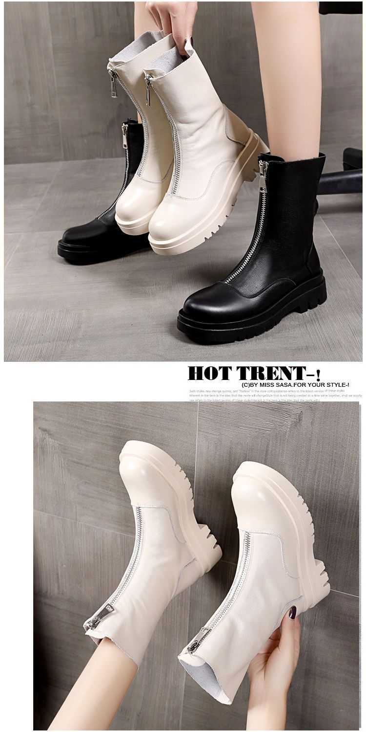 马丁靴女英伦风2020新款秋冬前拉链增高百搭ins网红瘦瘦短靴厚底