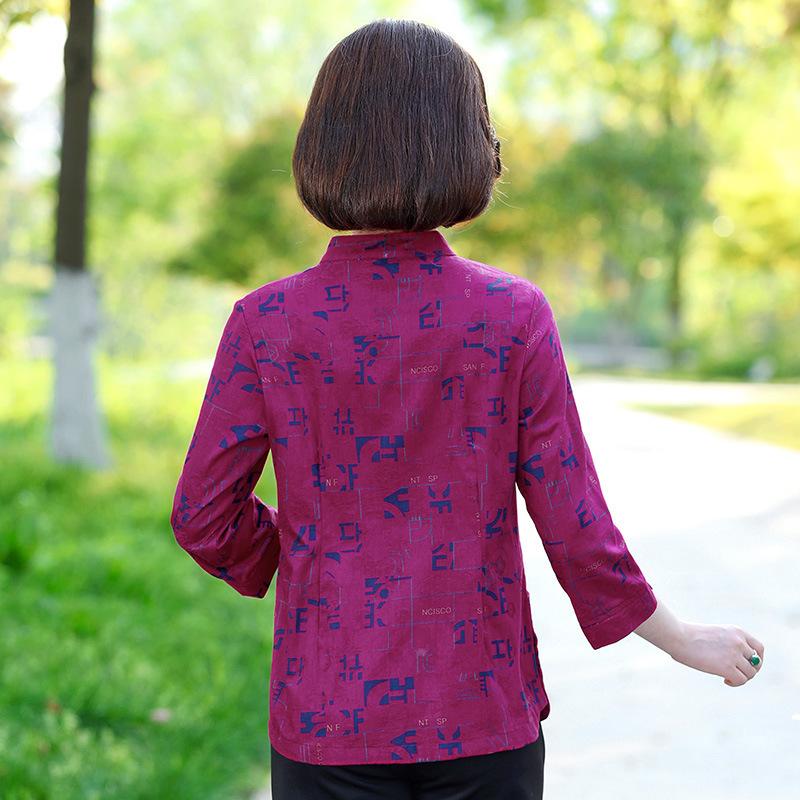 中老年夏装女七分袖衬衫大码全棉老年人民族风中袖衬衣印花妈妈装