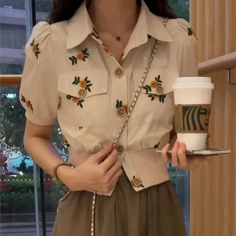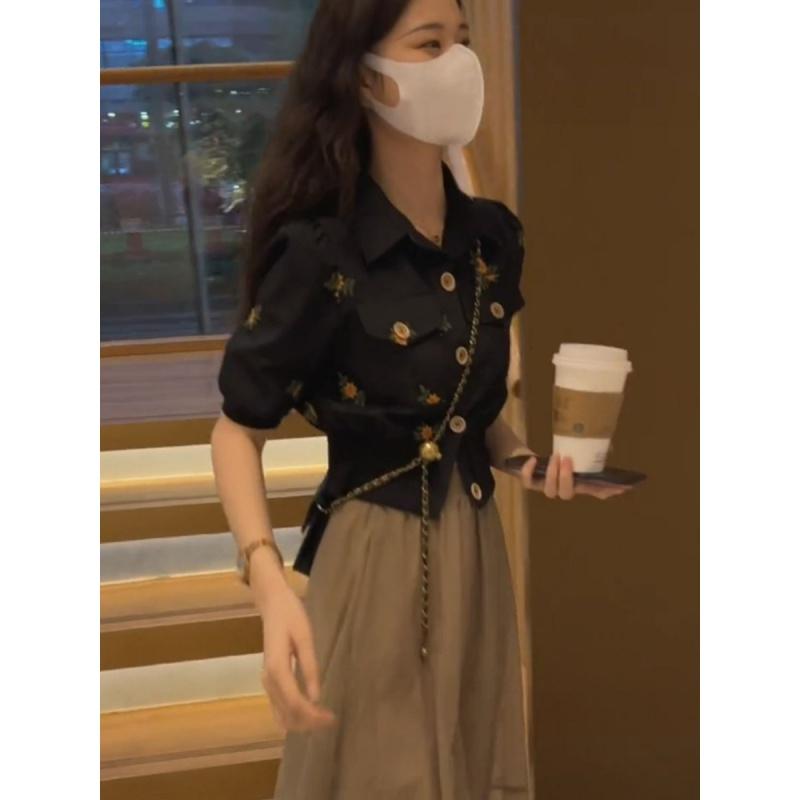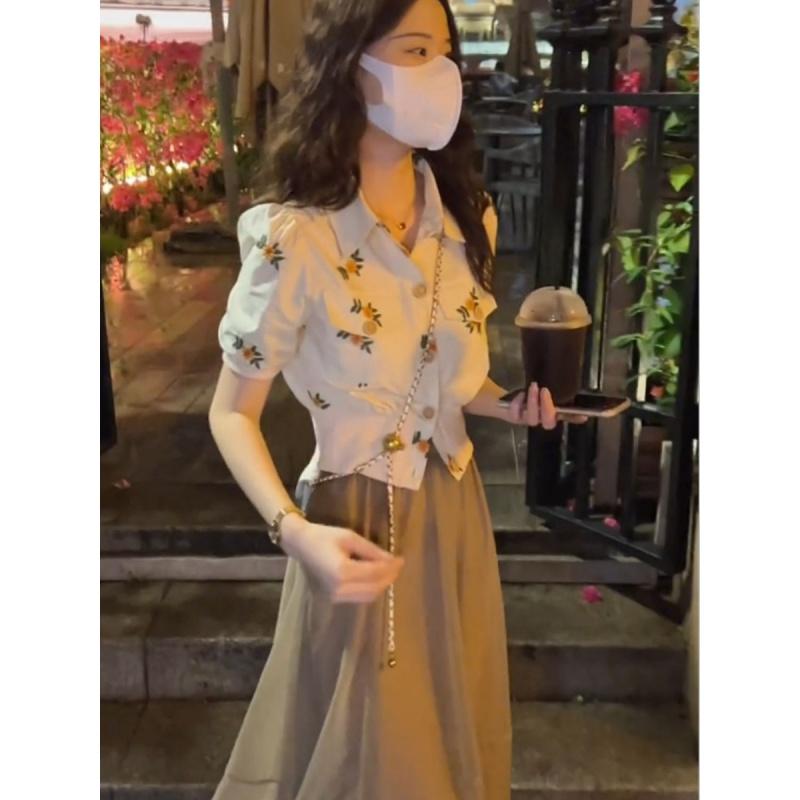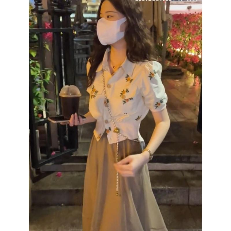 Small Suit Skirt for Women 2022 Summer New Embroidery Top French High Waist A- line Skirt Two-Piece Suit